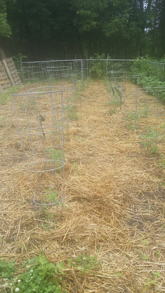 Before weeding of my tomato patch. Lots of grown up weed seeds of the oat straw. Post weeding, notice how many less weeds there are. I left the field peas from cover crops that had been tilled in before planting. The field peas will provide some added nitrogen to the soil.